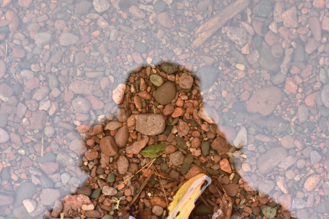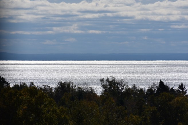When we arrived back at the beginning, it turned out Kris had not forgotten about the extra little hike down to Baptism River. Rats. Well, in for a penny, in for a pound, so down we went. Down, down, down, down… It turned out to be a sweet, quiet little beach where the river got gently swallowed up into the lake. I walked across the rocks, savoring that unique sound of boots crunching into the stones, and looked for a time into the shimmering reflections of autumn in the water.