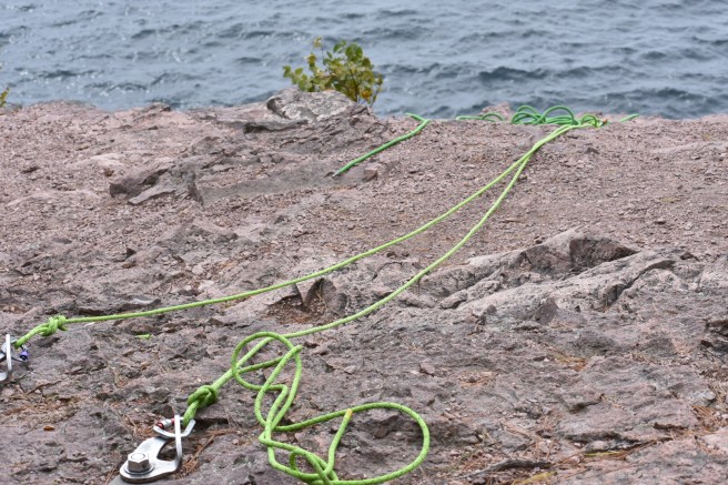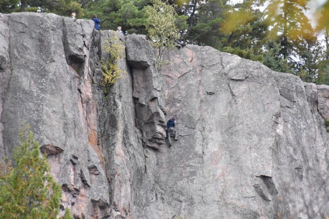 On the way back, we stopped and talked to the head of the climbing expedition, a nice young man overseeing even younger men and women. He was a stalwart fellow that had grown up in northern Minnesota. He pointed out the fallen Tettegouche Arch, which I had taken a photo of earlier, not knowing what it was. The arch fell some 4-5 years ago and caused quite a bit of shock and dismay among the locals. Gordon Lightfoot could have done a good ballad about it: “The Fall of the Tettegouche Arch.”