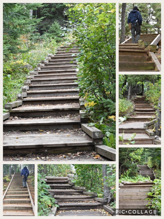 The first part of the trail was largely composed of wooden steps. There were steps going up and then steps going down again. Up. Down. Many, many steps, mostly going up. We climbed them all, so the least you can do is look at them.