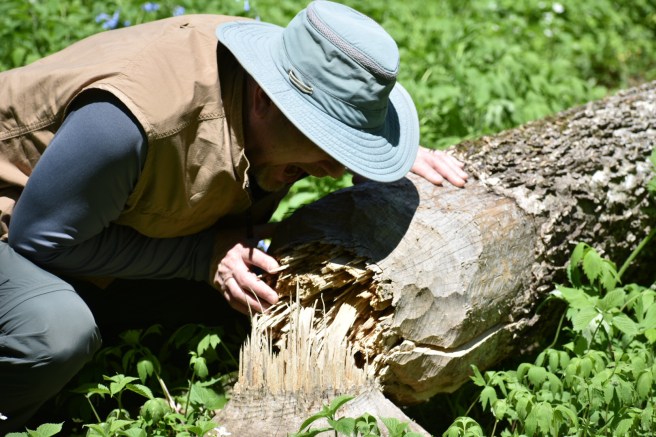 Kris got hungry and stopped for a little chaw on a fallen tree – he was feeling very beaverish at the time.