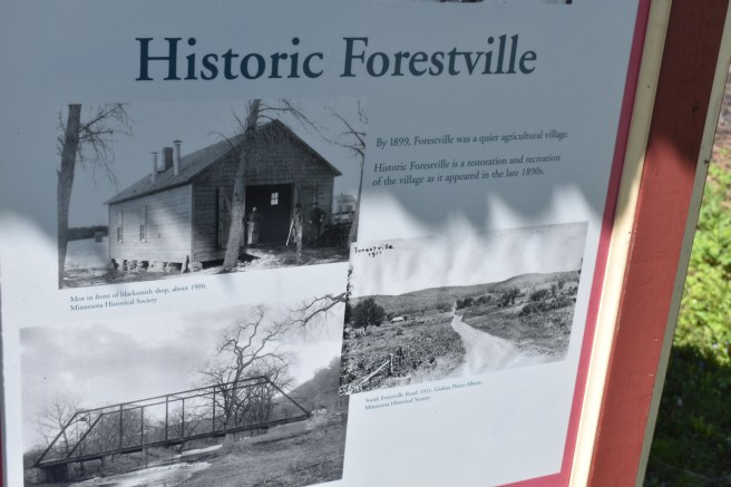 Fortified by our repast in Leroy, we were ready for our next hike at Forestville/Mystery Cave State Park near Preston, Minnesota. The trail here would be slightly longer: 2 miles. We could tell right away that we were in a rather more touristy place when we got there. More cars, more people, more attractions. The park boasts of having an equestrian camp, an actual Mystery Cave (which we didn’t make it to this time) and Historic Forestville (“Experience a historic Minnesota valley and town site with a rich history…”). This is a happening place!
