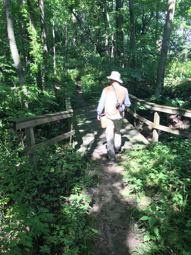 We walked on and suddenly found ourselves back to the beginning again. Oops – it appeared we took a wrong turn. Kris joked that it was like being in Mirkwood Forest – all roads lead back to the spiders. It turned out that I had left the back door open to the car, so it’s just as well we came back. We realized that we could drive to another part of the park, pick up one of the other trails and join up with the Hiking Club Trail at a point across the river from the second “bridge” (I’m going to keep putting that in quotes, because I don’t consider a bunch of uneven concrete blocks to be a standard bridge and that’s final. In my mind, I’m composing a letter to the park staff which reads, “You keep using the word ‘bridge.’ I do not think that word means what you think it means.”)