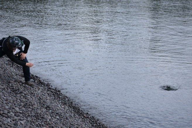 The first part of the trail goes right down to a stony beach, the kind of place where if you listen carefully, you can hear the flat stones calling out “Pick us up and skip us over the waters!” We discovered that rock skipping is not like riding a bike, but I think things might have improved if we had stopped to practice more.