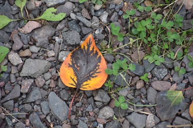 I had proclaimed a moratorium for myself on photo taking after our break – time to keep a steady pace and push through to the end. Kris didn’t take that announcement very seriously – he knows me too well. Two minutes later I spotted a leaf that I just HAD to get a photo of.