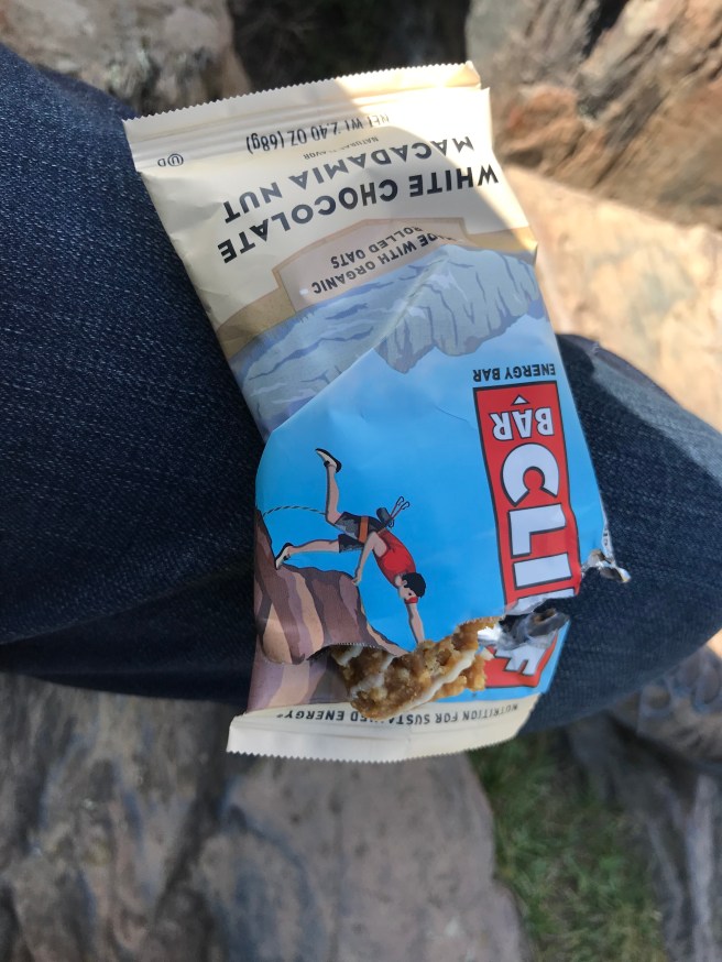 Kris also observed that our Clif bar habit was going to start provoking a Pavlovian response – the mere sight of one would make us want to start hiking. This was all warm-up for what I considered to be the most brilliant Clif bar remark of the day. As we were munching appreciatively on our blueberry (K) and apricot (L) bars, Kris noted, “Clif bars are the lembas of the modern age.” Quotable stuff, people! Clif needs to sit up and take notice.