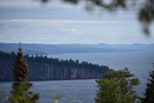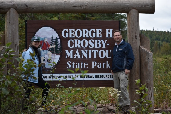 Anniversary Trip Day Four. It was time to return to our regularly scheduled lives, so we packed up and left our lovely cabin in the morning and began the slow meander home. We stopped for awhile in Two Harbors and got sucked into the vortex of a used book store there. This was purely accidental since the outside of the shop advertised arts and crafts and we were lured in unsuspectingly. Once there are books in the equation, one must spend time looking at them. If you don’t understand that, well, sigh… Anyway, we also wandered over to a local coffee shop where the cheerful woman behind the counter asked us, “How can I caffeinate you today?” I’m not a coffee drinker, but in the spirit of throwing caution to the wind on vacation, I had my first pumpkin spice latte. It didn’t impress me too much – too sweet (and this is coming from someone with a ferocious love of all things sweet).