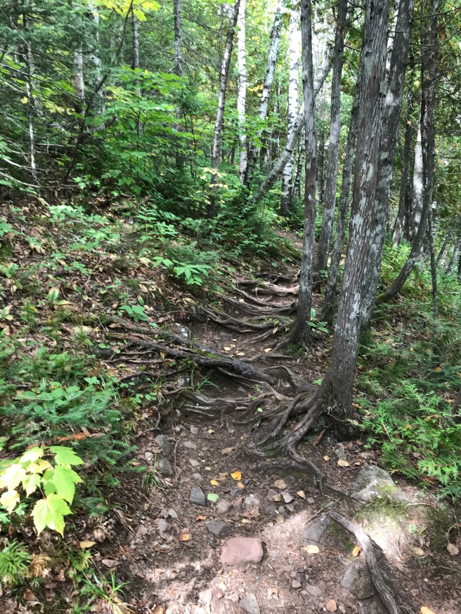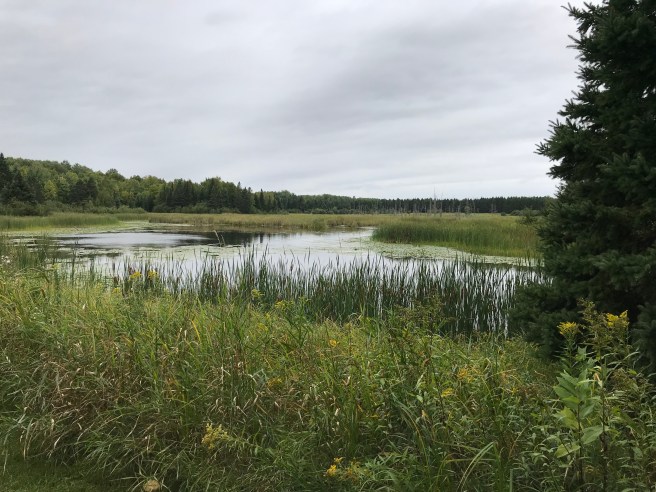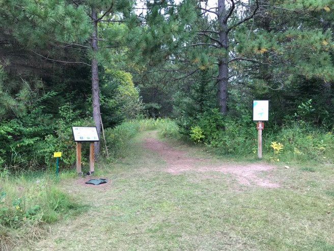 So, on to the our last hike of this trip. By the time we got to Moose Lake State Park, it was starting to sprinkle, so we left our Serious Cameras in the car and just brought our phones. The place was absolutely deserted – the first time in a long time since we’ve had that experience. My legs and knees were still aching from the previous two hikes, so this 2-mile hike was going to be a welcome respite.