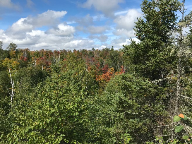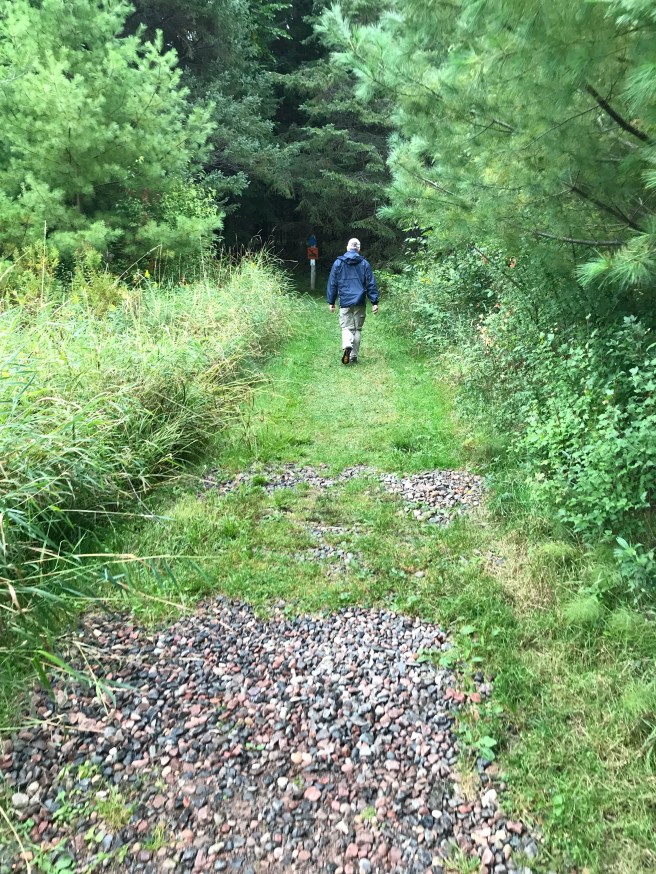Kris spotted a couple deer, but by the time I looked, it was just the tail end of one of them off in the distance. Alone again, we pushed on, thankful that we weren’t seeing any actual moose at Moose Lake State Park (at least not close up). The silence was broken suddenly by the sound of a text coming to my phone. I was amazed – usually there’s no coverage when you get into the woods. Glory to God and hallelujah – it was a message from a friend of mine about whom I had been very concerned and in much prayer over due to serious health issues she’d been having. My heart had been very heavy over news I had received a few days before and I had wondered if she was still with us. I was thrilled and relieved to hear from her. In a moment, our somber walk had become bright – there was light in the dark day, and solace in the wilderness.