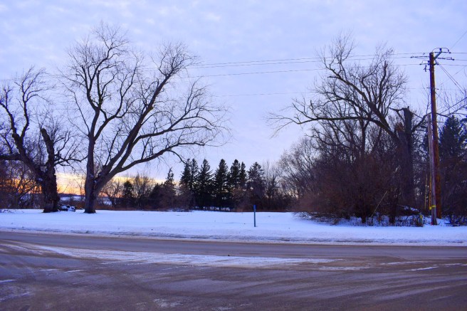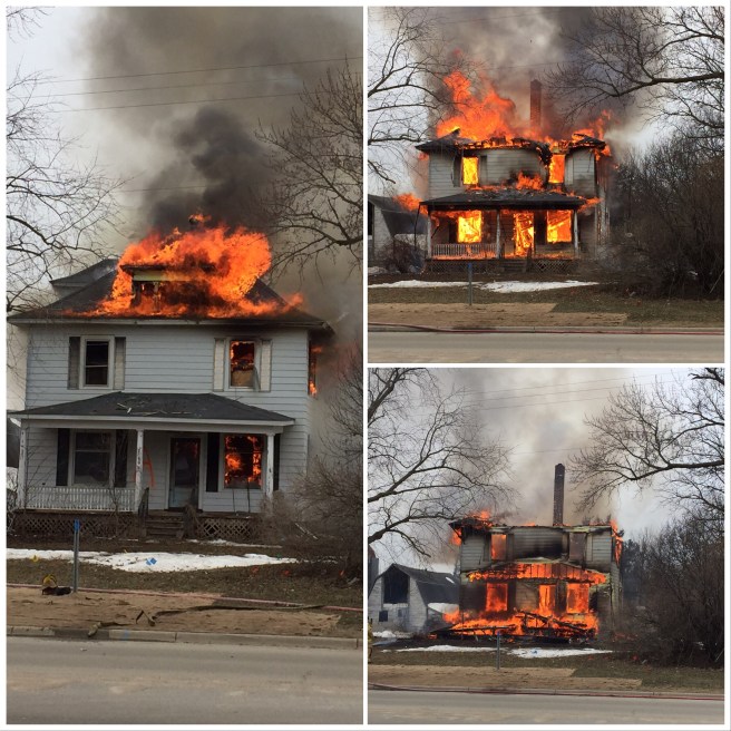 This is an unremarkable photo of an unremarkable piece of land. The only remarkable thing about this is what’s no longer there. When we first moved here, that space was occupied by an old farmhouse with a matching set of old bachelor farmers who were brothers. They kept to themselves, but we occasionally saw one of them if our mail got dropped there by mistake. One of them would drive up to our back door, honk his horn, and hand off the mail. Very few words were spoken at those times. The house and outbuildings aged along with the brothers, looking vaguely sad and neglected. First one, and then the other brother died and the property went up for sale. The house was in such disrepair that no one wanted it. Eventually the city bought it and the whole neighborhood got notice that the house would be taken down in a controlled burn as a practice exercise for firefighters.