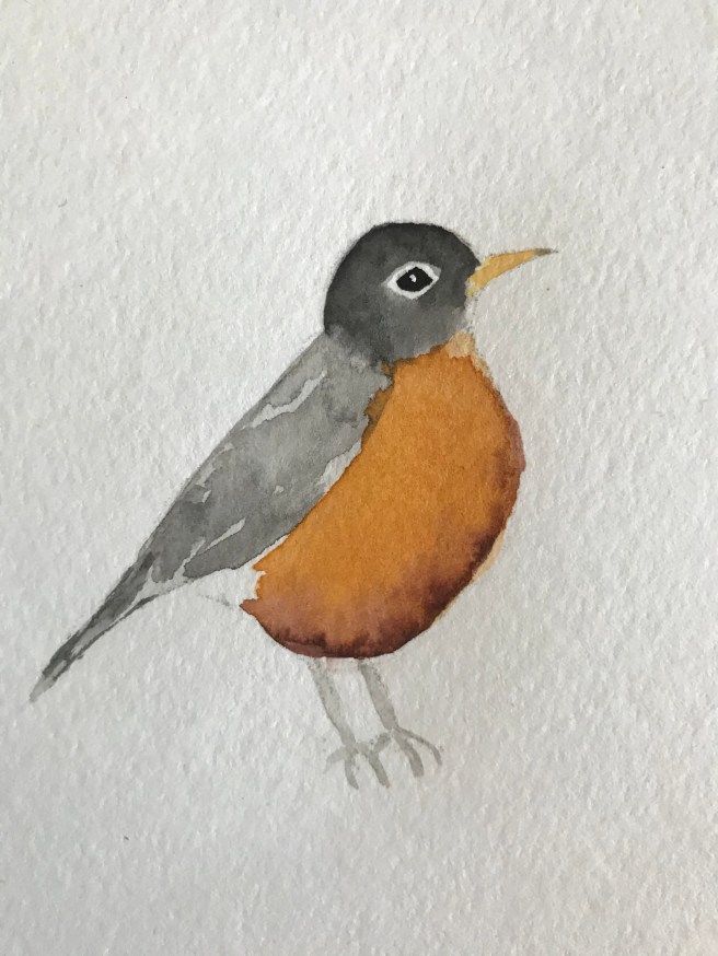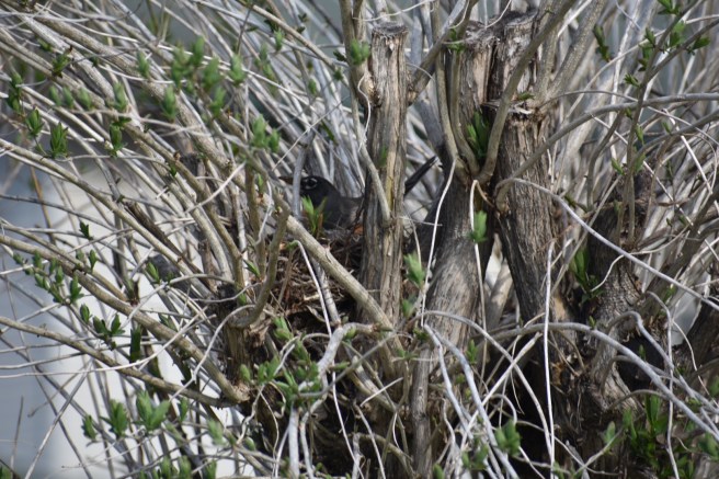 One day I looked out the window and realized only one little robin was left – his nest mates, mother and father, had all gone. I was determined to see him take his first flight and cleared my already-clear schedule for the day. Don’t worry, Robin – I won’t leave you alone! He kept standing up on the edge of the nest, flapping his wings experimentally, and then he’d lose courage and step back into the nest. I urged him on silently: “Go! Go! Go! You can do it!” Finally, I decided to give him an assist. While he was perched once again on the edge of the nest, I started to open the door. That was all it took – instinct took over and he went from the nest to the balcony railing and from there to the nearby tree. I was so proud. So very proud.