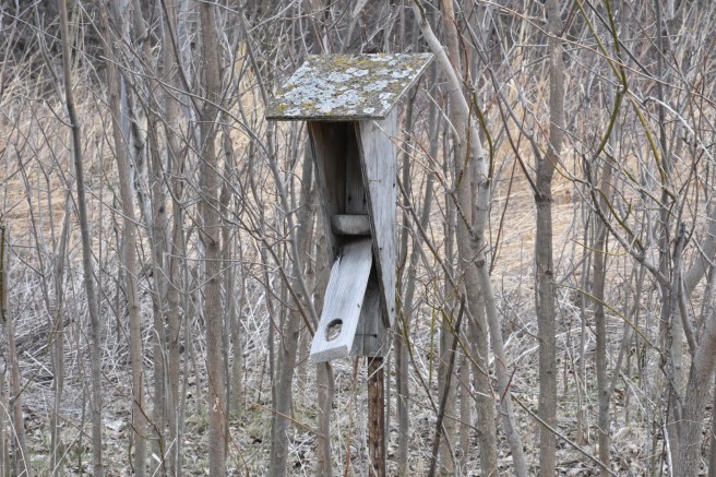 The bluebird houses were all open, looking like their tongues were sticking out. Do they do this for cleaning purposes? To keep the wrens out until the bluebirds come back?