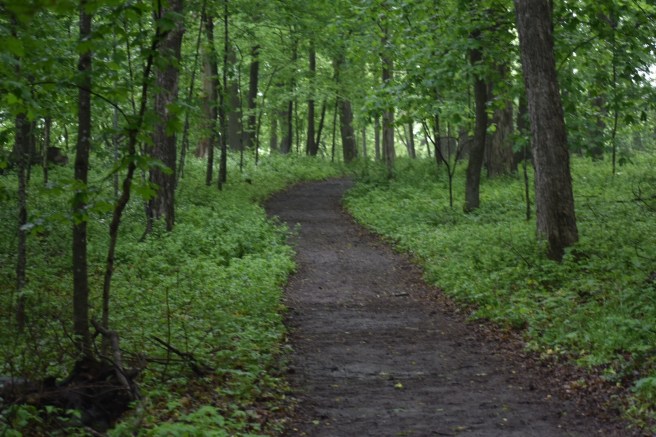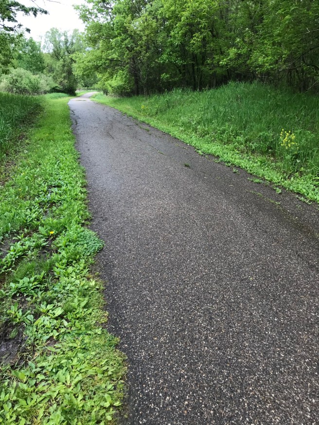 Since our last hike in April, the land of Minnesota has greened up beautifully. Our path was somewhat muddy, but wide and winding through tons of trees and spring wildflowers.