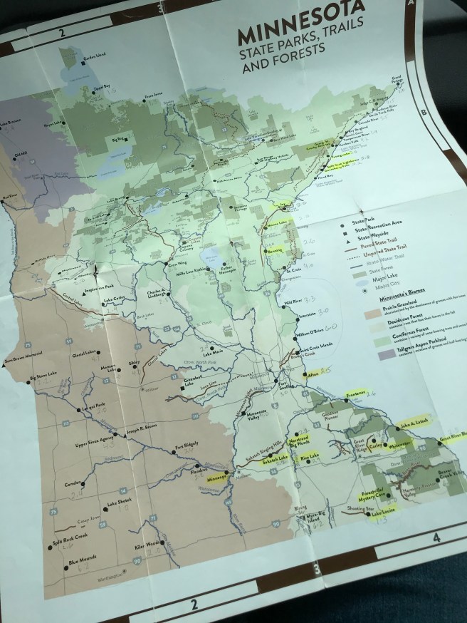 Myre (MY-ree) Big Island is a beautiful park right next to Albert Lea Lake and its associated ponds. The hike of 6.2 miles would be our longest hike yet. On our way there, I looked over the state park map and we did some strategizing for the 2020 Hiking Club year for us. We’re hoping to finish up the southeastern quadrant (1 more park: 6.2 miles), the North Shore cluster (4 parks; 8.9 miles total)), the Mississippi River/Eastern border cluster (4 parks; 16.3 miles total) and a couple more central Minnesota parks (7 miles total). If we have time, we’ll consider the southwestern cluster (5 parks; 14.2 miles total). That’s pretty ambitious and would bring our total mileage to over 100 miles. It’s easy to be ambitious while looking at a map.