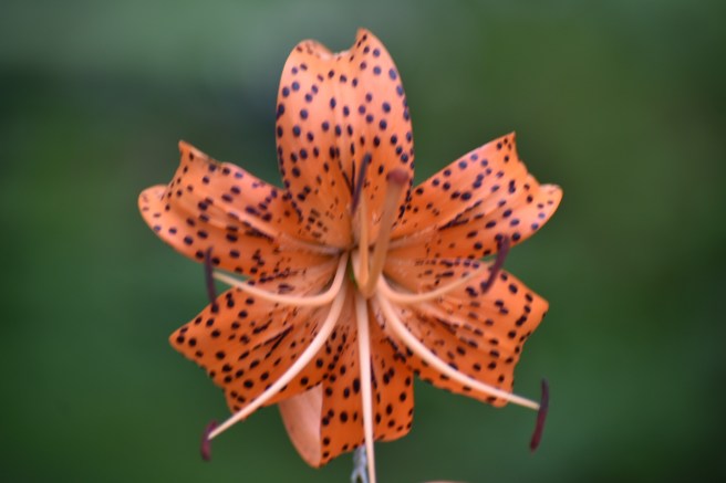 I was chagrined when I saw the photos, because we always get these coming up as volunteers in our yard and I’m not terribly fond of them (but it was handy for getting photos for this post). I brought them in as cut flowers once and found out that the pollen is not only prodigious, it makes a permanent stain on your clothing. Someone needs to tell the flower-naming people that tigers are striped, not spotted. Shouldn’t this be a leopard lily? That’s even got alliteration going for it.