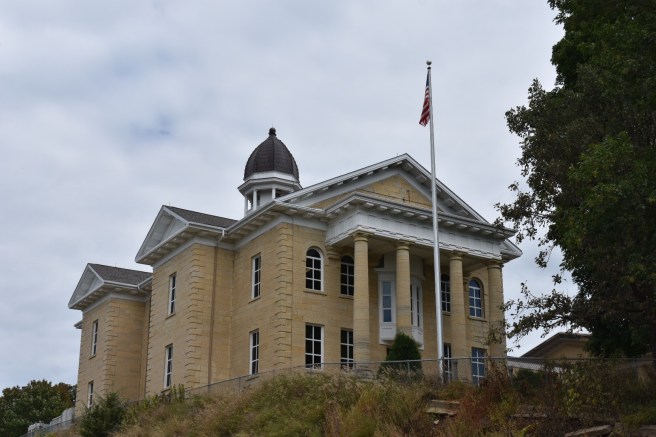 I met a friend for a picnic lunch yesterday in sweet little Mantorville, a small town about halfway between us. We had our lunch by the riverside and then decided to stroll around town a bit. The county courthouse sits up on a hill overlooking the city, a handsome sentinel, indeed.