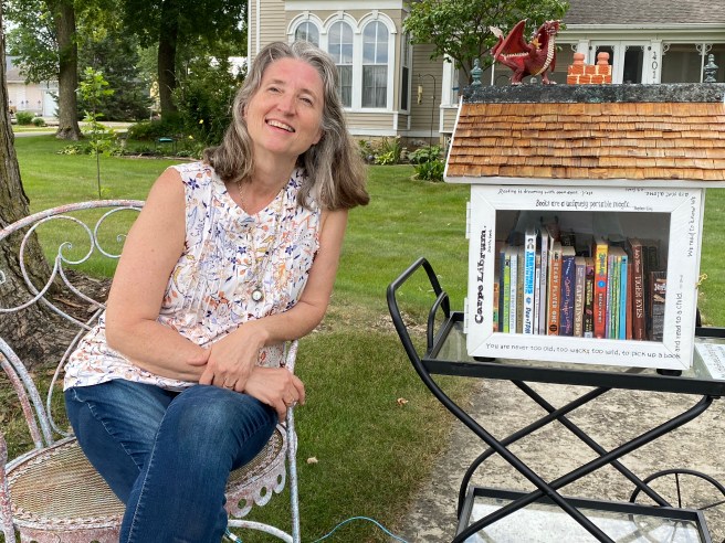 We walked on and came upon a delightful tableau for a Little Free Library – so inviting!