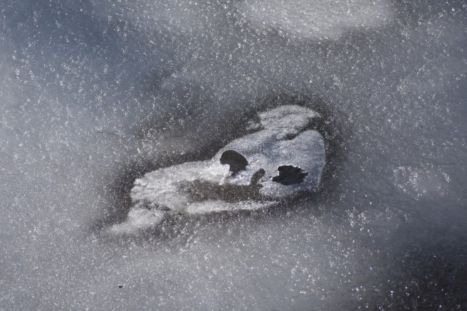 I watched the Thriller music video when I got home. If I’d ever seen it before, I’d forgotten it – very creepy. I took this photo of an ice bubble in a river. It’s also very creepy.