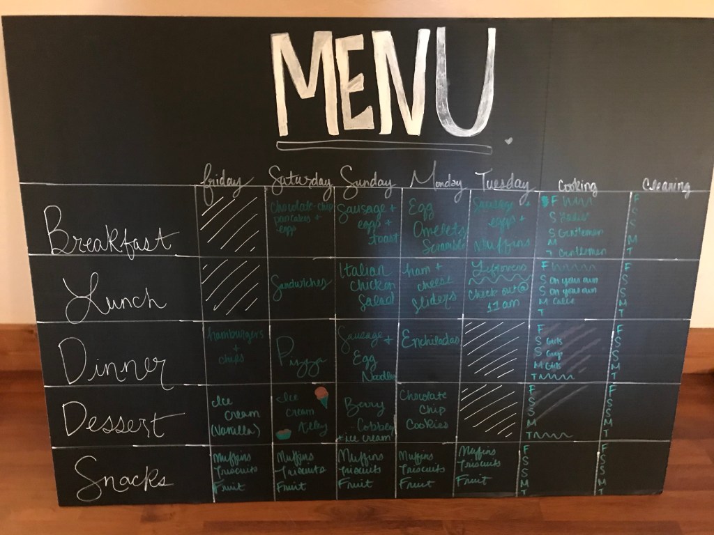But that was just the beginning. A menu had been made by the aforementioned daughter-in-law, she who has the gift of event planning. And what a menu it was! When it came out for display, the fat cells broke into a heart-felt rendition of the Doxology, so great was their joy.