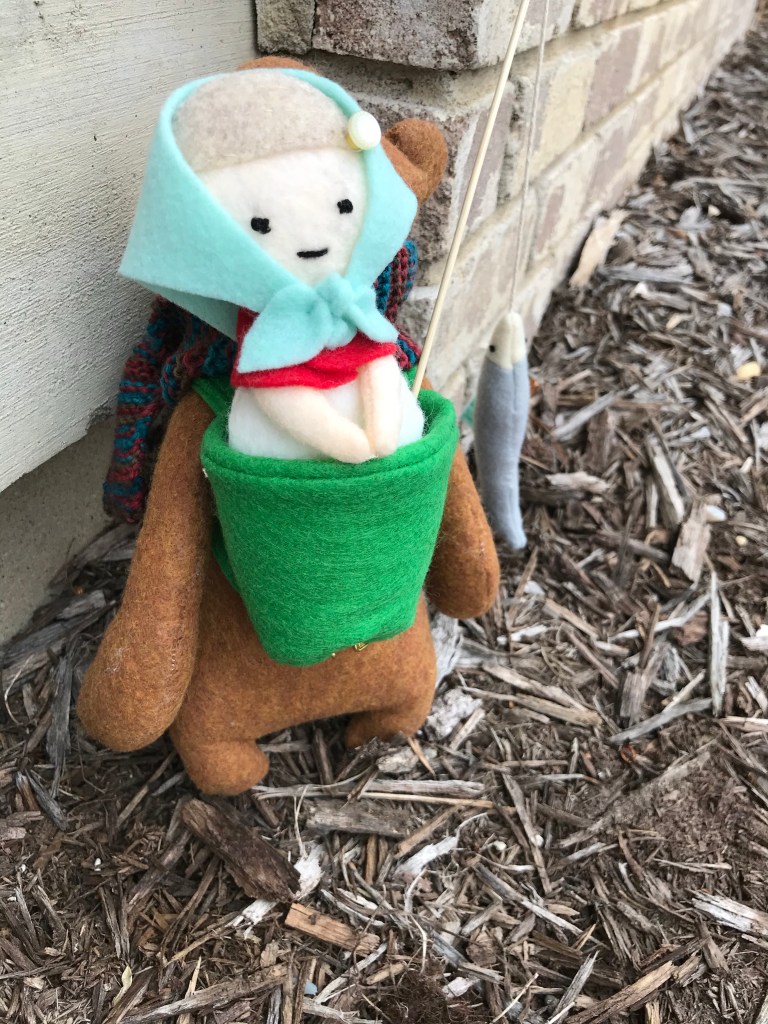 And there you have it. I’d love to have some cute illustrations to go along with this, but I’m just using photos of the felt creatures I’ve made. “Agra Glendalough” means “love between two lakes,” if I got the Irish right. We went to Glendalough State Park recently and I became quite enamored with the word. Let me know what you think of Fig and his latest adventure!