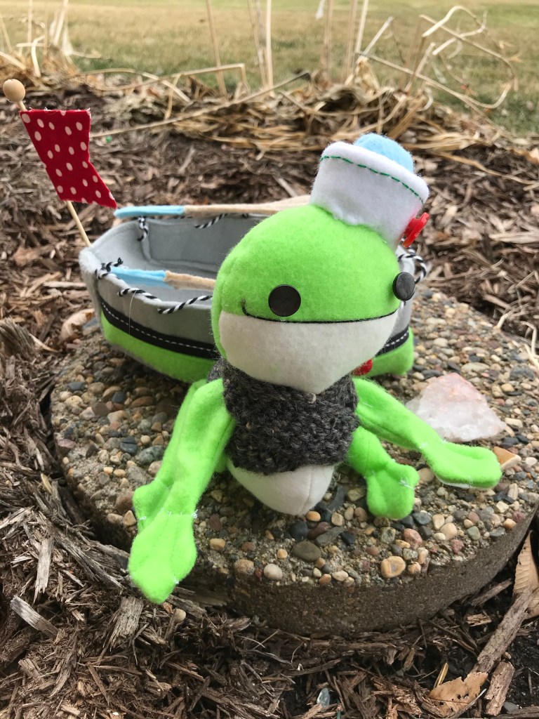 Fig hated timidity of all kinds, so he jumped out boldly toward them, plucking his hat off mid-jump and sweeping it before him as he bowed in noble fashion, saying, “I am most pleased to meet you, fellow travelers. You have had the good fortune to meet Fig Newton, the frog with wanderlust and a sturdy boat to carry him toward adventure.” Fig had thought out this introduction beforehand, on the chance that he might meet others and on the whole approved of how it sounded now that he’d said it out loud.