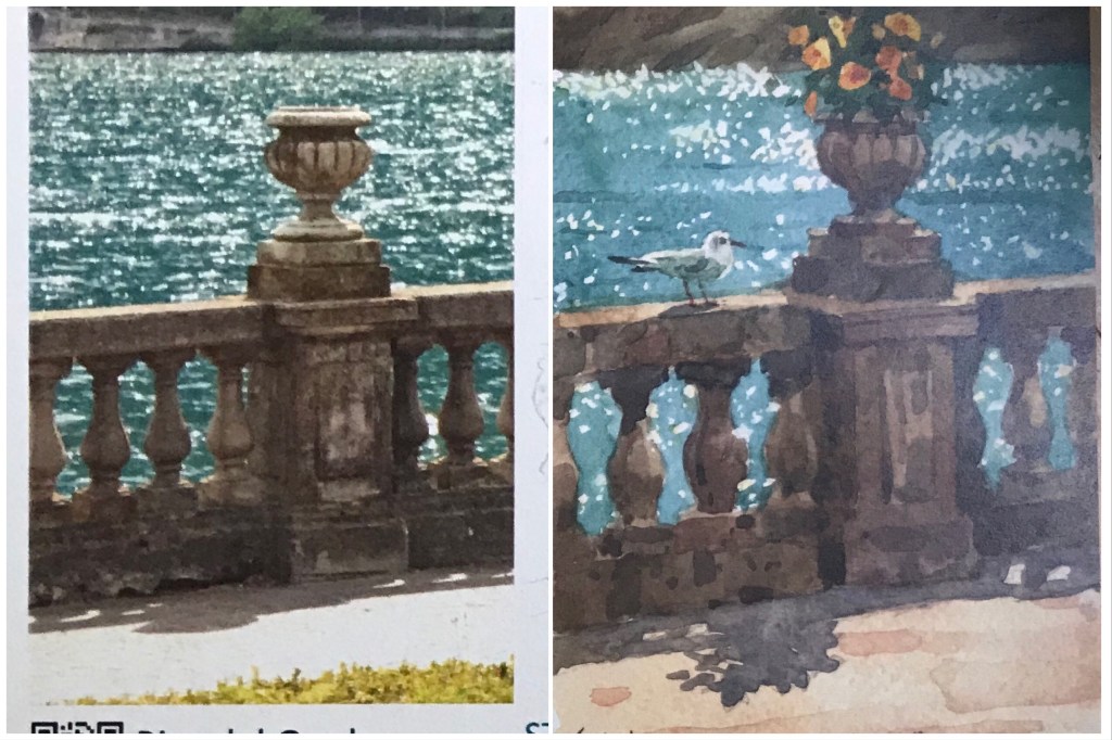 Here we are at Lesson 13 in the Watercolor Trip to Italy series. You’ve traveled so far with me! This lesson is called Riva del Garda, which without any help from Google, I’m going to guess means something like “the river garden.” Let me go check. I’ve confirmed it: you should never try to guess these things. Riva means “shore” and “Garda” is the name of a lake in Italy. It would have helped if I’d remembered that the reason the class is called “Watercolor Trip to Italy” is that each photo is from a different location there. Riva del Garda is the name of a town in Italy. Why do you put up with me and my senseless prattling?