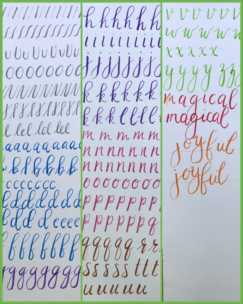 I received some Tombow Fudenosuke pens for Mother’s Day this year which I took to be a sign that I needed to start working on lettering again. Last year I bought a package of Tombow Dual Brush pens because I kept seeing artistic work with beautiful calligraphy-style lettering on them. Upon further investigation (YouTube), I discovered that most people were using these dual brush pens. I figured that the skill would be harder to learn than it looked, but I was determined.