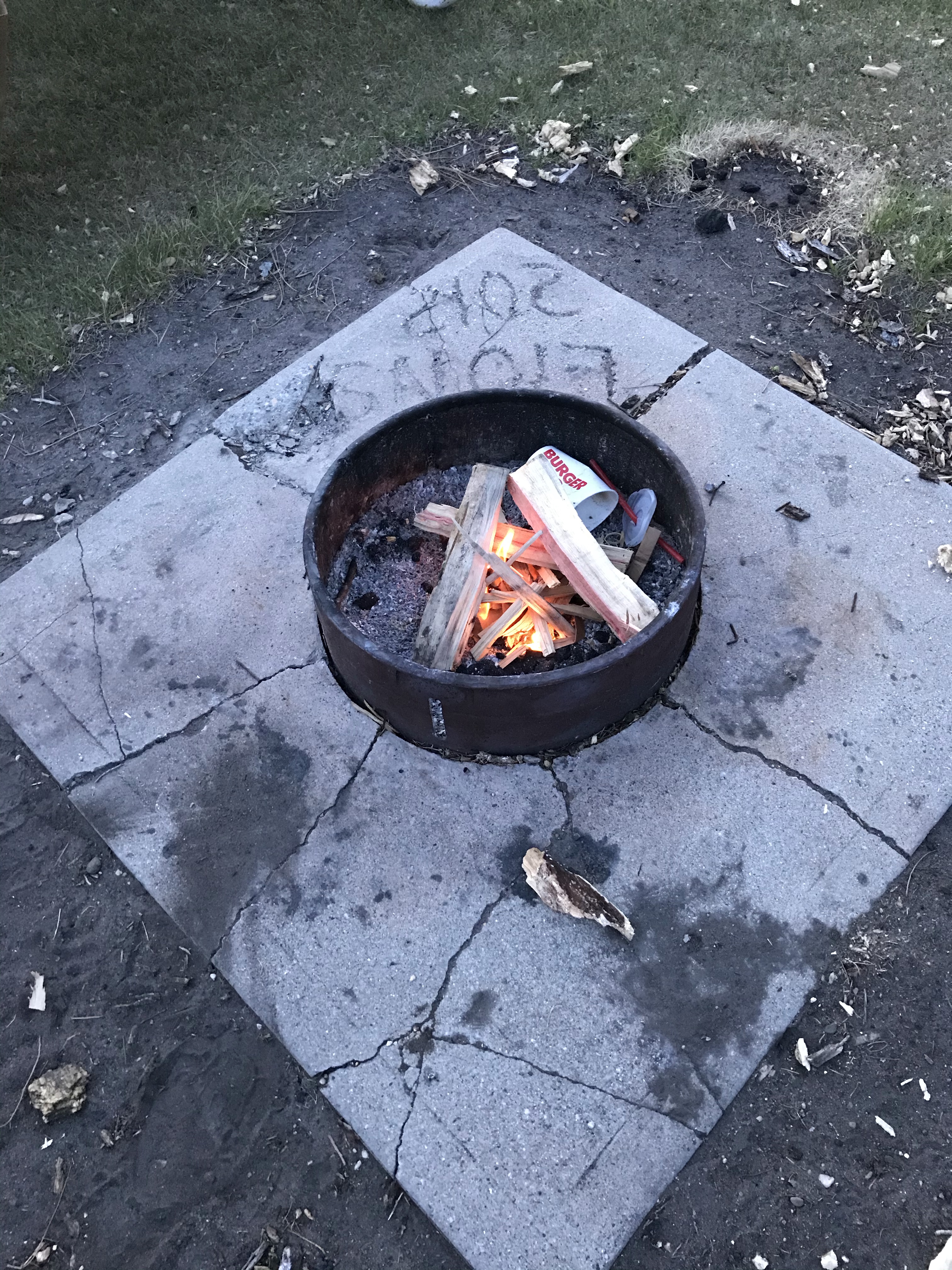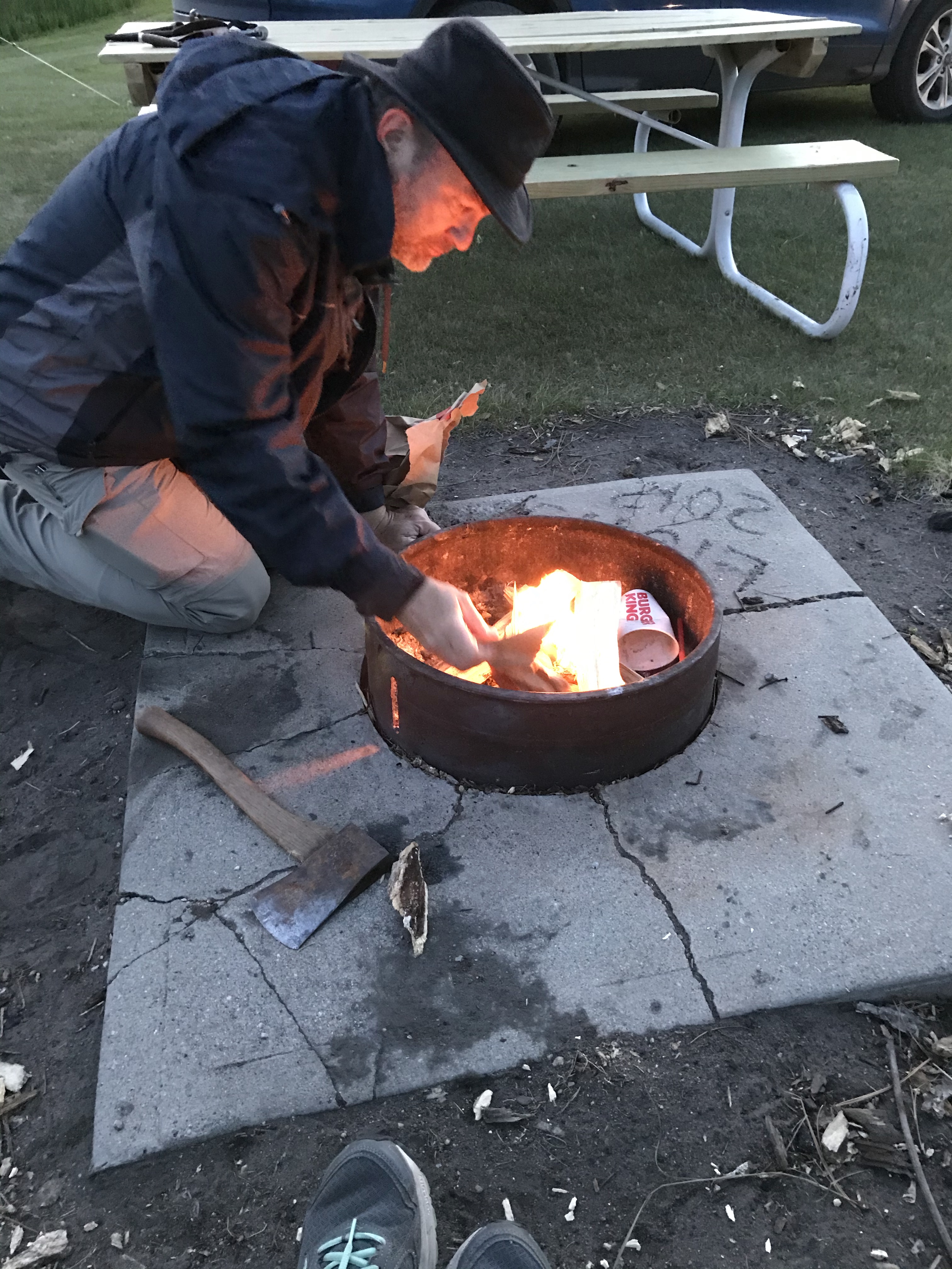 The guy came by with his pickup truck full of wood pieces about five minutes later and somehow the words “no thanks,” became “yes, please.” The allure of a cozy campfire is hard to turn down. Plus he had three young sons with him (ages 8-12 maybe?) all chomping at the bit to help their dad bring the wood over to our campfire. For $5 he gave us enough wood for three nights of campfires. When we told him what city we were from, he said, “I’ve taken wrestling teams down there!” His sons were very helpful and enthusiastic, which warmed our hearts.