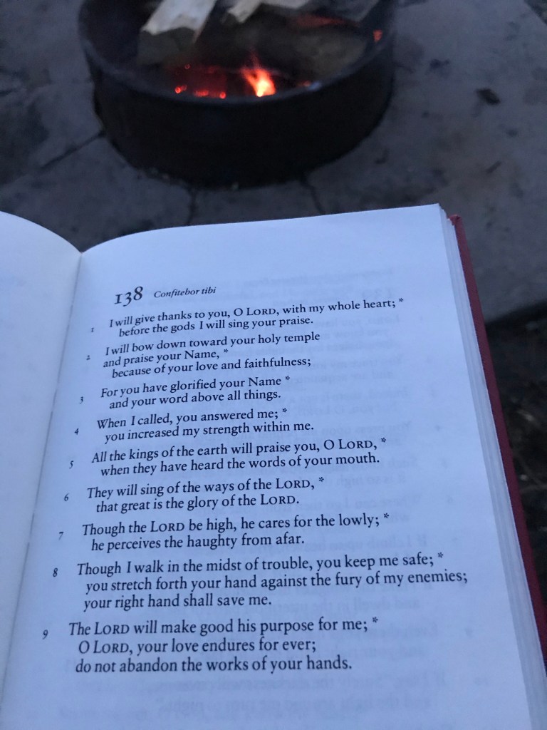 When it got late, we got out our Books of Common Prayer and did our Psalm reading for the evening.
