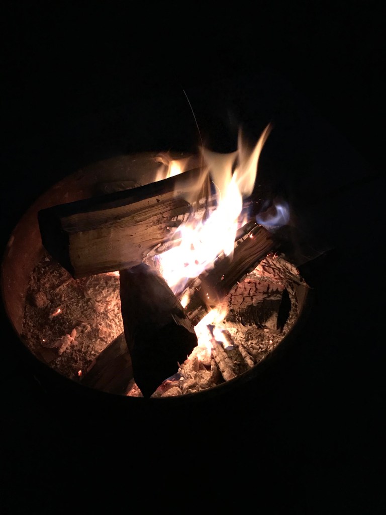 Eventually we had a decent fire going. Ahh…one of the creature comforts of camping. We sat quietly watching and listening to the fire, occasionally talking. A tamed fire is so beautiful and mesmerizing.