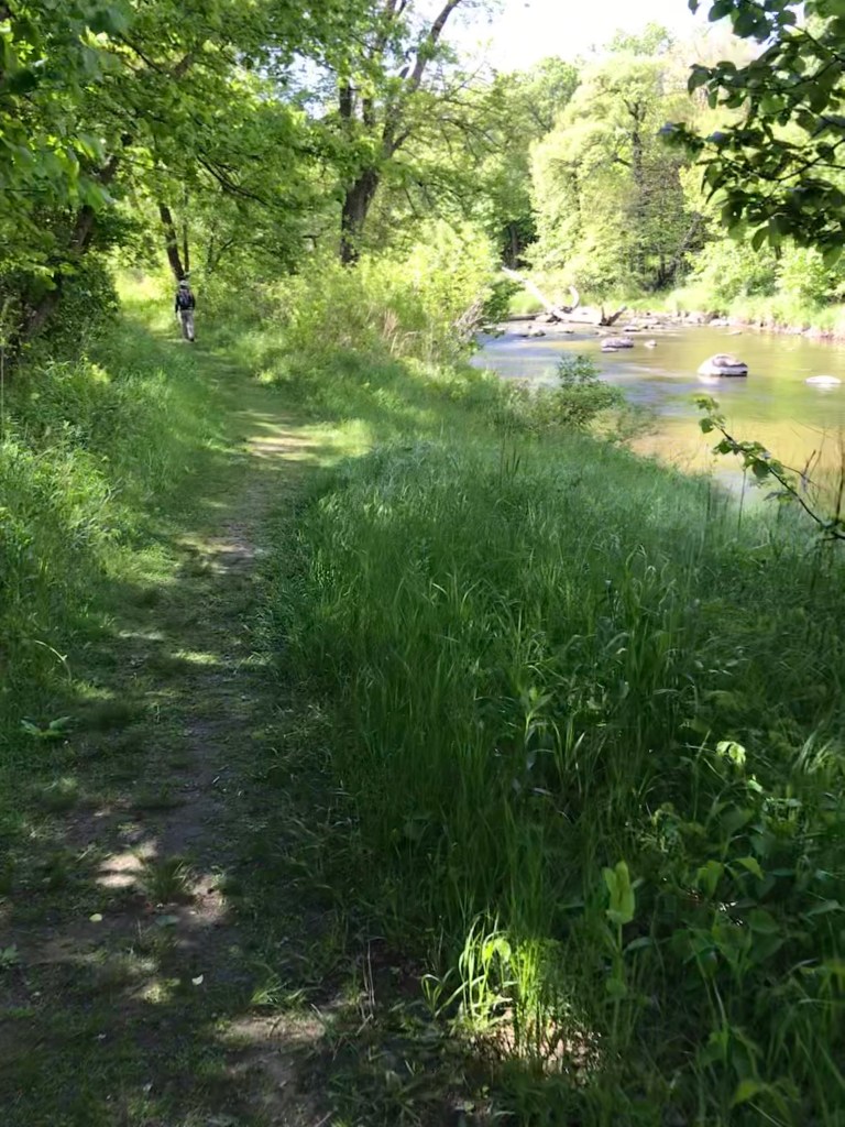At one point I stopped to take a short video, just so you could hear the wonderful sounds of the hiker’s world: bird song and the river in the background.