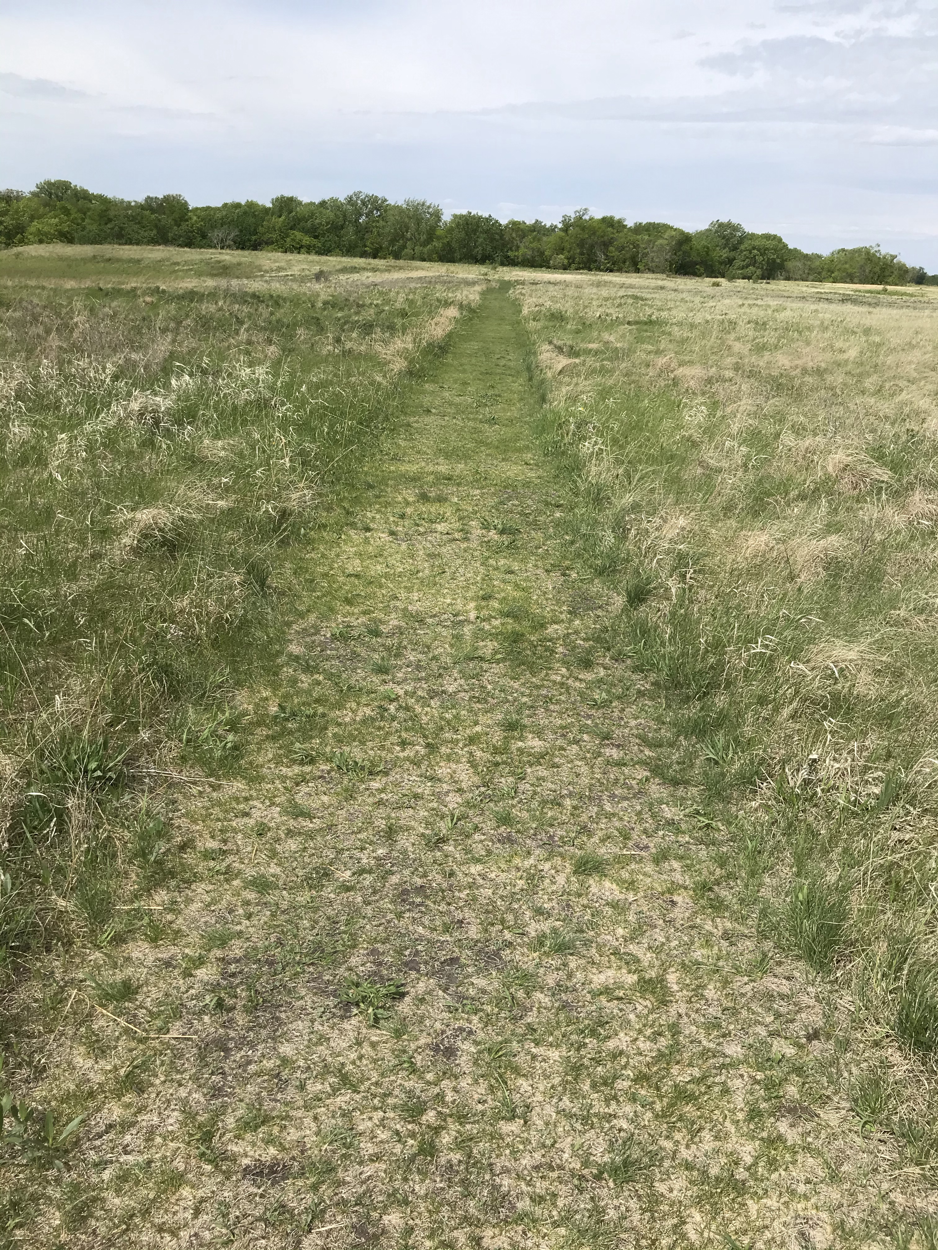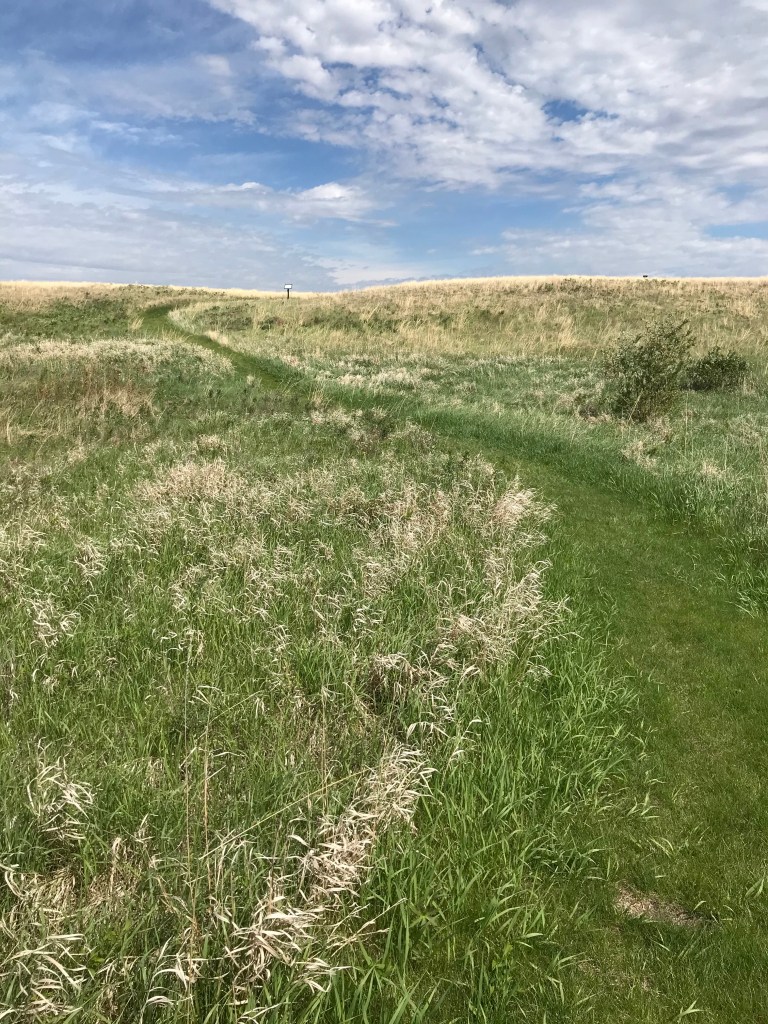 We walked along the ridge of the prairie and Kris noticed a sign that spoke of the many rocks up there that had been brought by Glacier Express from Canada many eons ago. Kris’s comment on that was that if the Canadians wanted their rocks back, they’d have to “come and get ‘em.” 😆