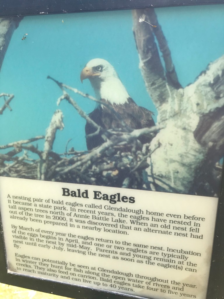 Glendalough State Park is in west central Minnesota near the town of Battle Lake and has a 3.3 mile Hiking Club hike around Annie Battle Lake. As a curious person, you no doubt have a couple questions starting out: what does “Glendalough” mean and who is the Annie of Annie Battle Lake? Rest assured, I have you covered on these important questions. “Glendalough” means “the glen between two lakes” and was named by Minneapolis Tribune owner F.E. Murphy and his wife, who were of Irish descent (the original Glendalough is a valley in Ireland). When the Tribune owned the property they hosted VIP’s like President Richard Nixon and President Dwight Eisenhower.