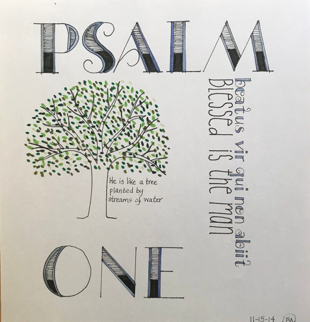 Back in 2014 I had an idea, an artsy idea. These kinds of ideas occur on a regular basis and are usually beyond the scope of my skills. But this one seemed doable, so I started what I was sure would be an epic journey. Oh, you want to know what it was? Here ya go: I planned do a page of artwork for each Psalm in the psalter. I didn’t want to bite off more than I could chew, so my idea was to make each one somewhat simple, containing the following elements:
