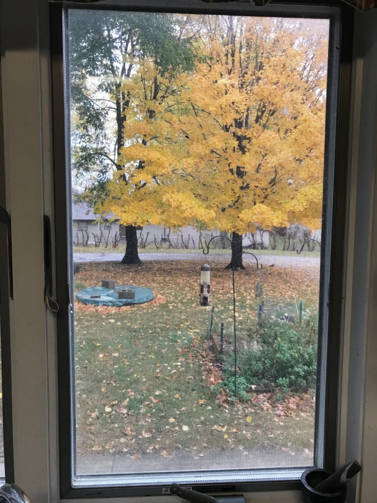 Those of you who have kitchen windows over your sink, rejoice and be glad. You have a living painting in front of you that is always changing seasons, and in and out of which go all of the little creatures that have taken up residence somewhere near you. Keep a pair of binoculars nearby so you can identify the birds. Rap sharply on the window to scare away the squirrels that are trying to get the bird seed out of the feeders. Make sure your camera is on standby so you can capture the beauty of the leaves turning that brilliant gold in the fall.