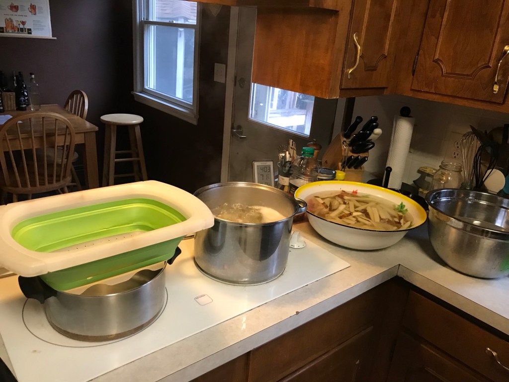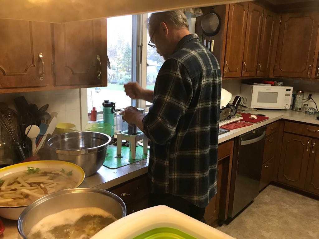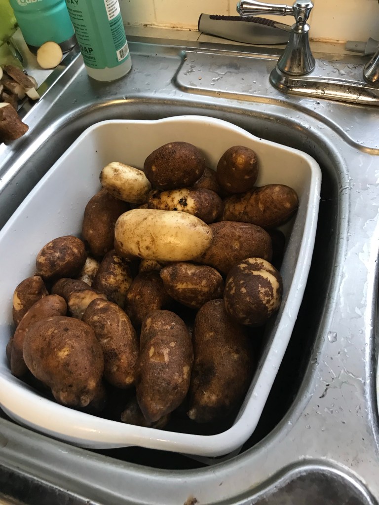 It was a Ma Ingalls day in my workshop – I even had Pa Ingalls here to help me. We didn’t exactly butcher a pig and process it, but we were definitely in “Living Off the Land” mode, knee deep in potatoes, AKA taters.