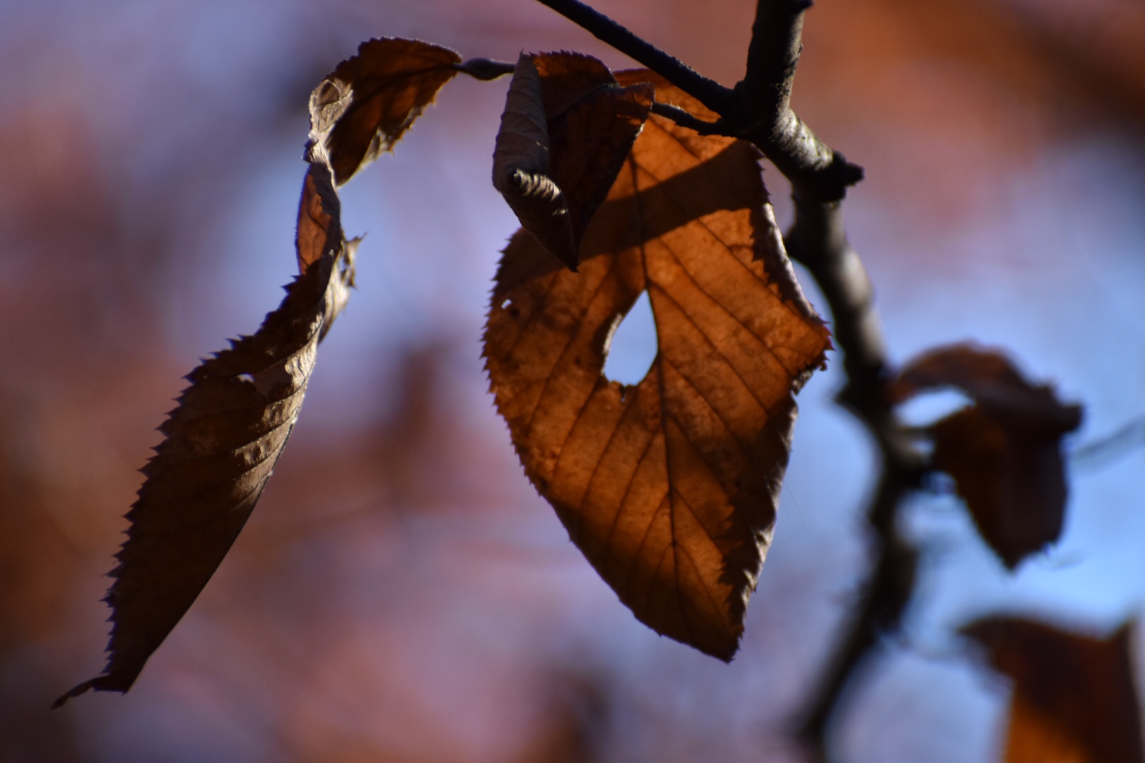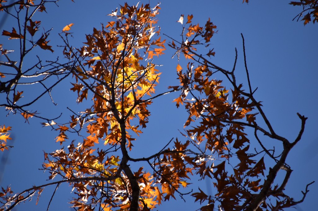 Also, I took a photo of a couple lone leaves at the tippy top of a tree that had otherwise been completely denuded of its foliage. I trained my camera on it for a few minutes thinking one of them could let go at any time and then I’d get this epic photo of a leaf just beginning its descent. I underestimated its grip on the branch.