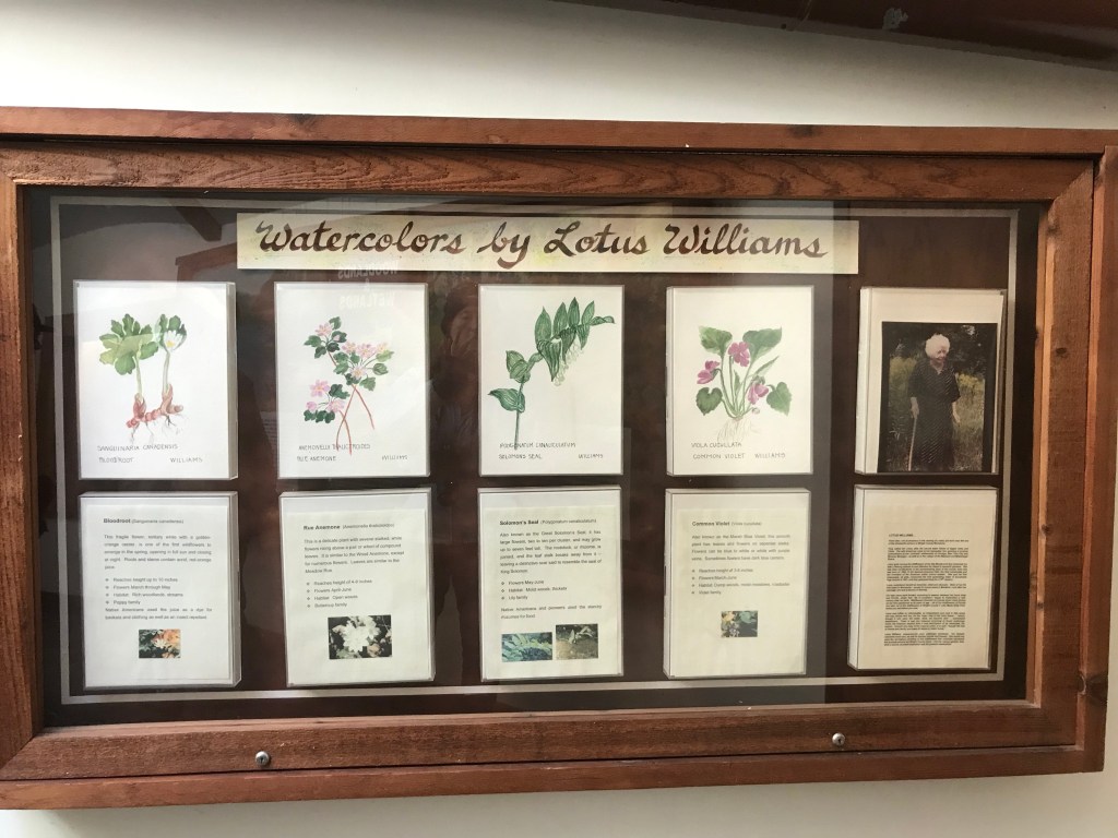 Inside the trail center, we found a display of watercolors done by a local woman named Lotus Williams. She was born in 1889 and spent most of her life in Minnesota. She didn’t start painting until she was 50 years old, thus disproving the old adage that you can’t teach an old dog new tricks. Who came up with that, anyway? Must have been a young person. While we were admiring her paintings, we chatted up a couple people in the building who turned out to be members of the Friends of Lake Maria group. They pronounced it “Mah-rye-ah,” so maybe we should, too.