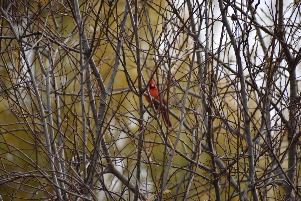 Playing peek-a-boo with a cardinal. He thought I couldn’t see him. I took another photo just for fun.