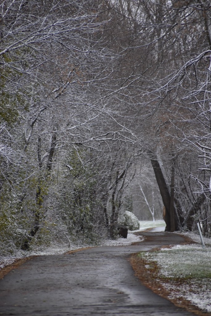 Snow! What’s not to like about a fresh snowfall, especially one that lightly dusts the trees and leaves and doesn’t stick to the path? It’s marvelous! It’s beautiful! It’s festive!