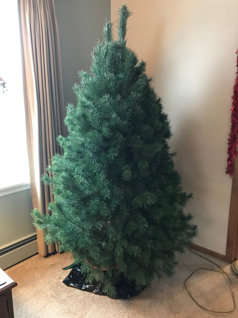 I dismantled the Christmas tree the other day. Sigh… it seems like just yesterday I was mantling it. When shorn of all its baubles and lights, it’s still a handsome presence in the house.
