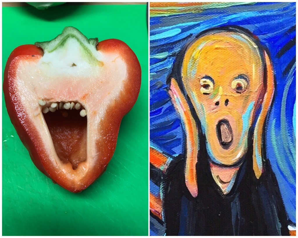 And on the subject of vegetables, I’m conducting a little survey. I cut open a red pepper tonight for a salad and was struck by the appearance it had. Do you think the pepper looks more like (A) or (B) below?