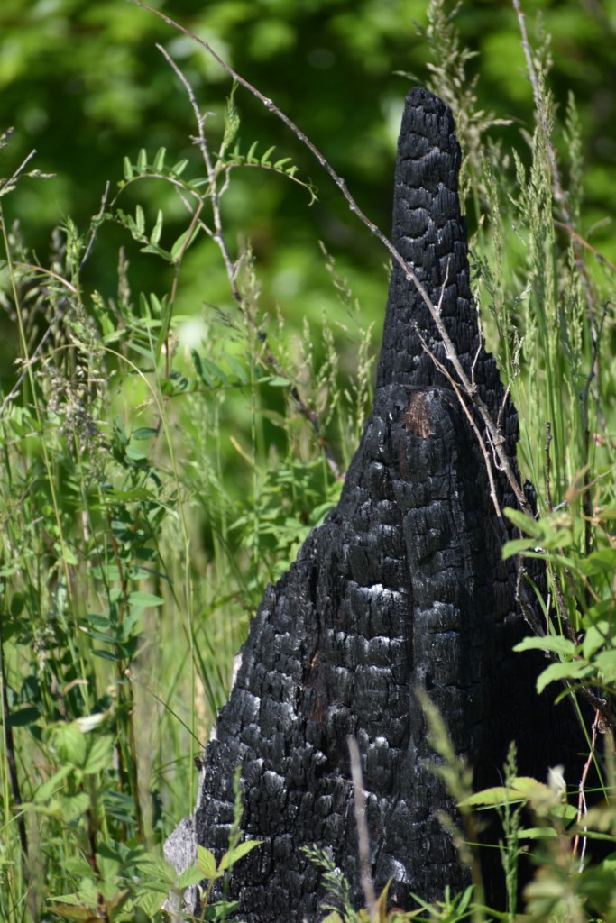 We also saw a few remnants of burnt trees here and there, proof of a somewhat recent fire there (although it could have been many years ago). And that got me thinking about the Hinckley firestorm of September 1, 1894, Hinckley being the nearest city to St. Croix State Park. There’s a museum in Hinckley that commemorates that disastrous fire and I believe one of the local cemeteries also includes a monument to those who died in the fire. If you want to know more about that, check out the book Under a Flaming Sky: The Great Hinckley Firestorm of 1894 by Daniel Brown, which I read a couple months ago.