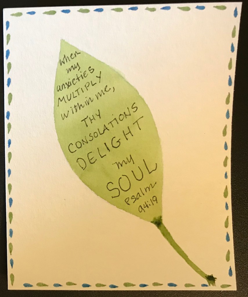I woke up last night and starting fretting about something that was on my mind. It was hard to let it go. I thought about a Bible verse I’d memorized a long time ago: “When my anxieties multiply within me, Thy consolations delight my soul.” Psalm 94:19.