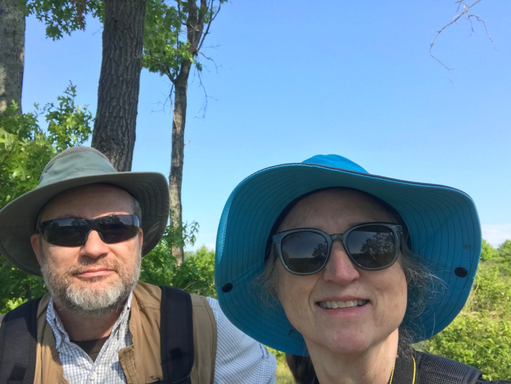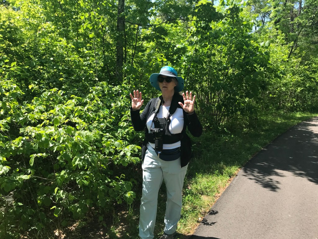 We hadn’t walked more than a few yards when we realized that a dose of bug repellant was going to be in order. We sprayed it on liberally the first time and more liberally the second time about an hour later. The mosquitos were our constant companions, keeping up that steady whining noise for which they are so well known. For the most part, the bug spray formed an efficient, if smelly shield. But no matter – we were glad to be back on the hike, walking amidst spring greenery with our cameras, ice water, and our plant-identifying app.