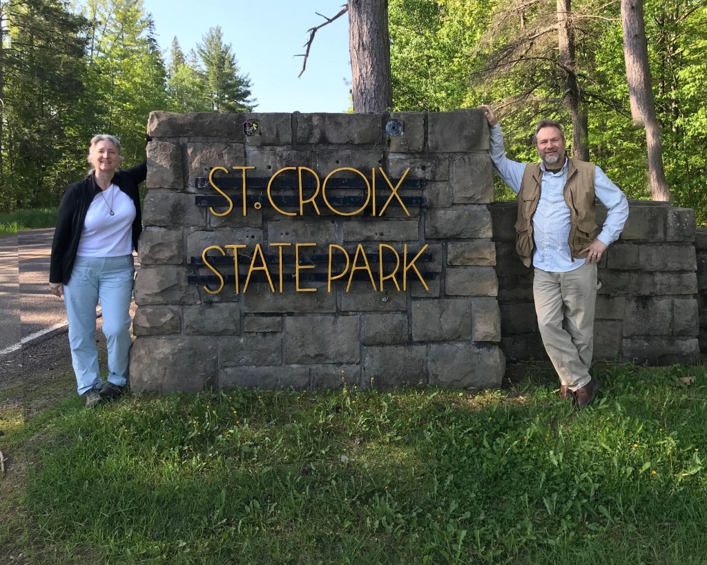 St. Croix State Park is the largest state park in Minnesota. It’s also the park that taught me just how out of shape I have gotten since our last hike at the end of October last year. Our hike was to be 4.0 miles, mostly along the St. Croix River, and when I inquired at the park office about the terrain, she said the Hiking Club hike was fairly flat. She also said we might see a black mama bear and her cubs, which had been seen by hikers the previous week. I didn’t bring the trail description booklet on the hike like we usually do and we ended up having reason to regret that. But let’s start out at the beginning, on a sunny, cloudless day around 9:00 a.m. with a temperature of 57 degrees. We both agreed that we could not have chosen a better day.