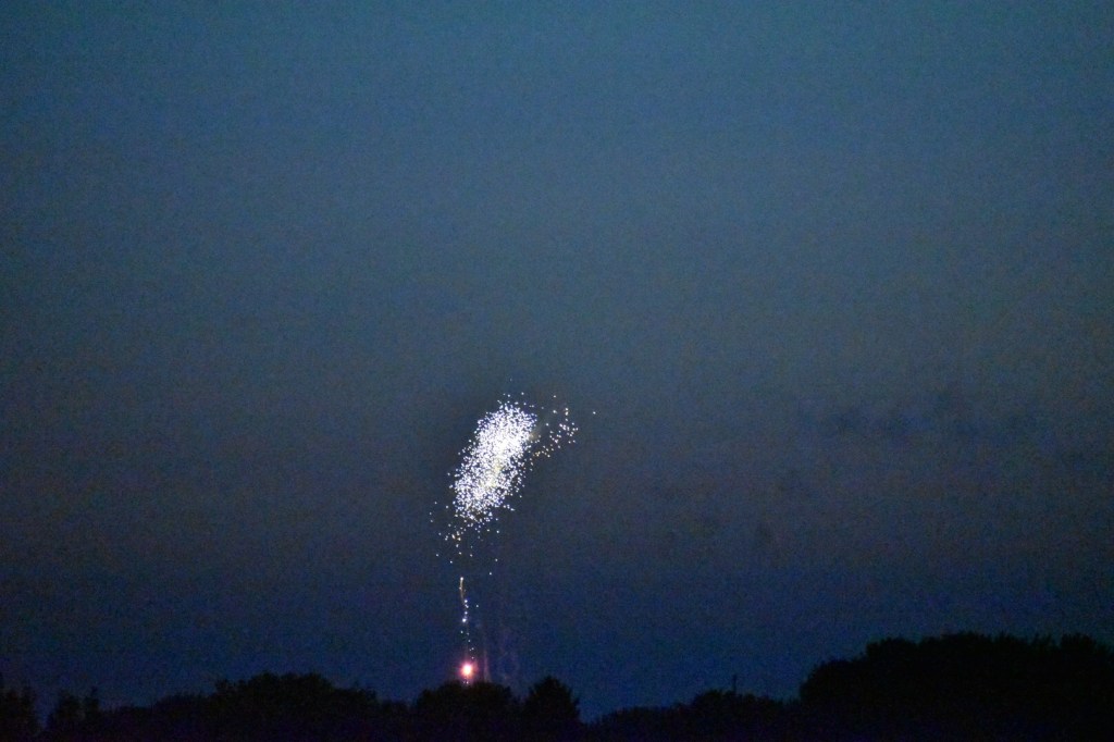 Eventually, we discovered that if we stood on the corner near our house, we could see the fireworks from there. That’s what we did last night while all of the rest of you were doing it up proper.