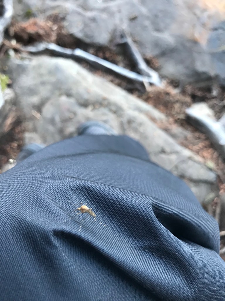 What you see in that photo is a frustrated mosquito. We were up in the lakes during a time of a Great Mosquito Gathering. They had assembled in large numbers and were primarily interested in my blood. I’m one of those people that mosquitos love. My husband’s theory is that my blood is too sweet and that I need to drink bitter ales and unsweetened coffee in order to have the kind of natural immunity that he seems to possess. I told him I would pay real money if someone could develop a kind of fabric that mosquitos couldn’t pierce. In my experience, they bite through socks, jeans, long-sleeved shirts, anything. The amount of mosquito spray I use seems irrelevant to them. It seemed to be my fate to act as mosquito bait.