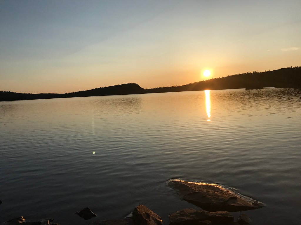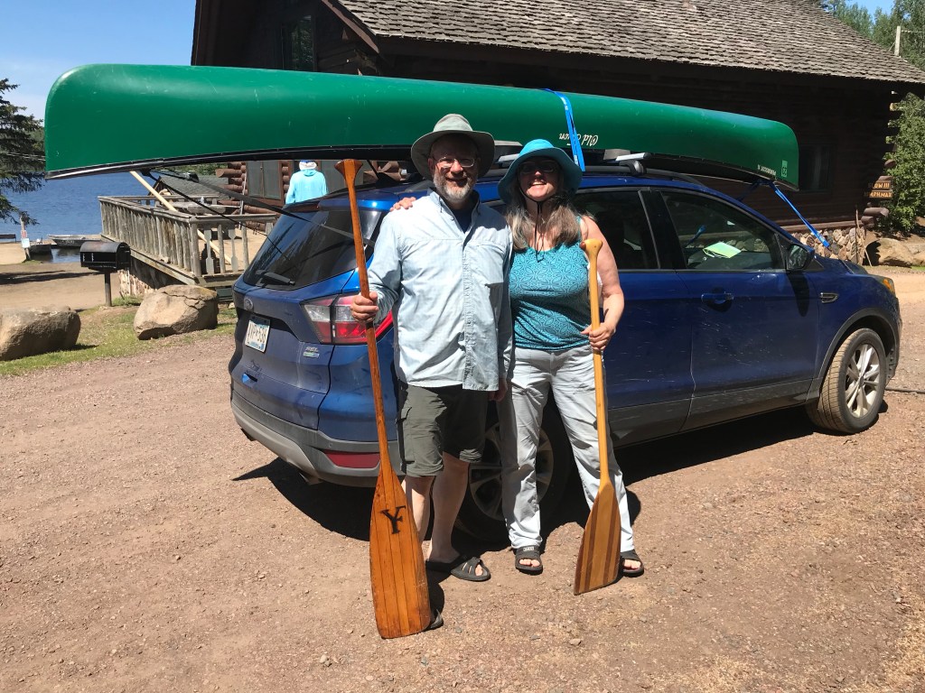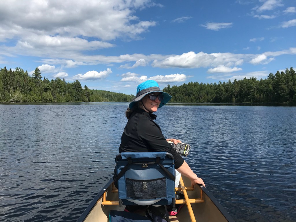 That brings us to the present. The two of us just came back from a 3-day sojourn in the Boundary Waters. I was considerably more nervous this time, being the ripe old age of 63 and sadly out of shape. The success of our trip was solely because of my husband’s preparations and planning, and – it must be said – his muscles. We had a couple mishaps and scaled back our plans somewhat, but we both loved being back on the lakes, paddles working together, moving through the water and being completely off the grid. We read our Psalms morning and evening and made a joyful noise unto the Lord.