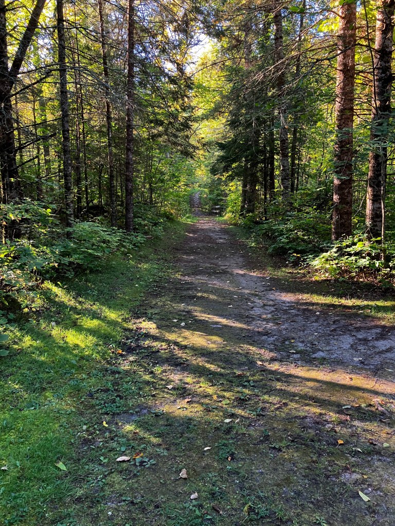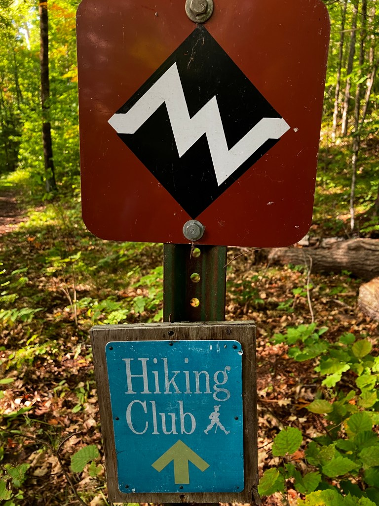 I had a eureka moment on this trail. I noticed some interesting icons on trail signs. I’d seen them before but wasn’t sure what they meant. I finally looked at the legend on one of the maps on the trail and saw that these were cross-country ski trails in the winter and the icons meant “easy,” “difficult” and “more difficult.” In other words, these were comparable to my knee scores! Very nice to know.