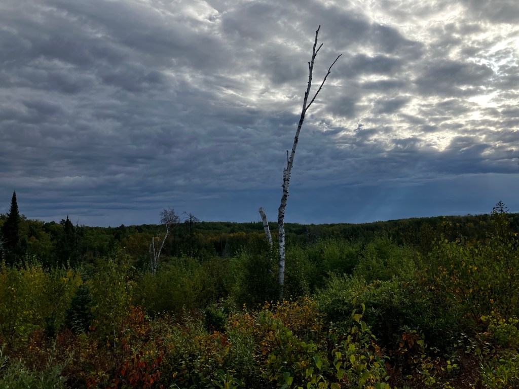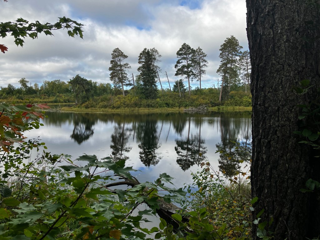 There’s a sub-section of the hike that’s enclosed, a Scientific and Natural Area where there’s an effort to cause re-growth of jack pines after a windstorm in 2012 took down most of them. Jack pines are an interesting tree in that the only thing that opens up their pinecones to release the seeds is intense heat, like a forest fire, which serves well to revive forest growth after a devastating fire. The plantings in the SNA are from pinecones which had been forced open by other means. Time will tell whether or not man’s way will be a successful as God’s way.